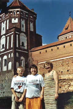 L-R: Sergei, Maria (in centre) and a local history teacher. Picture taken August 2001.